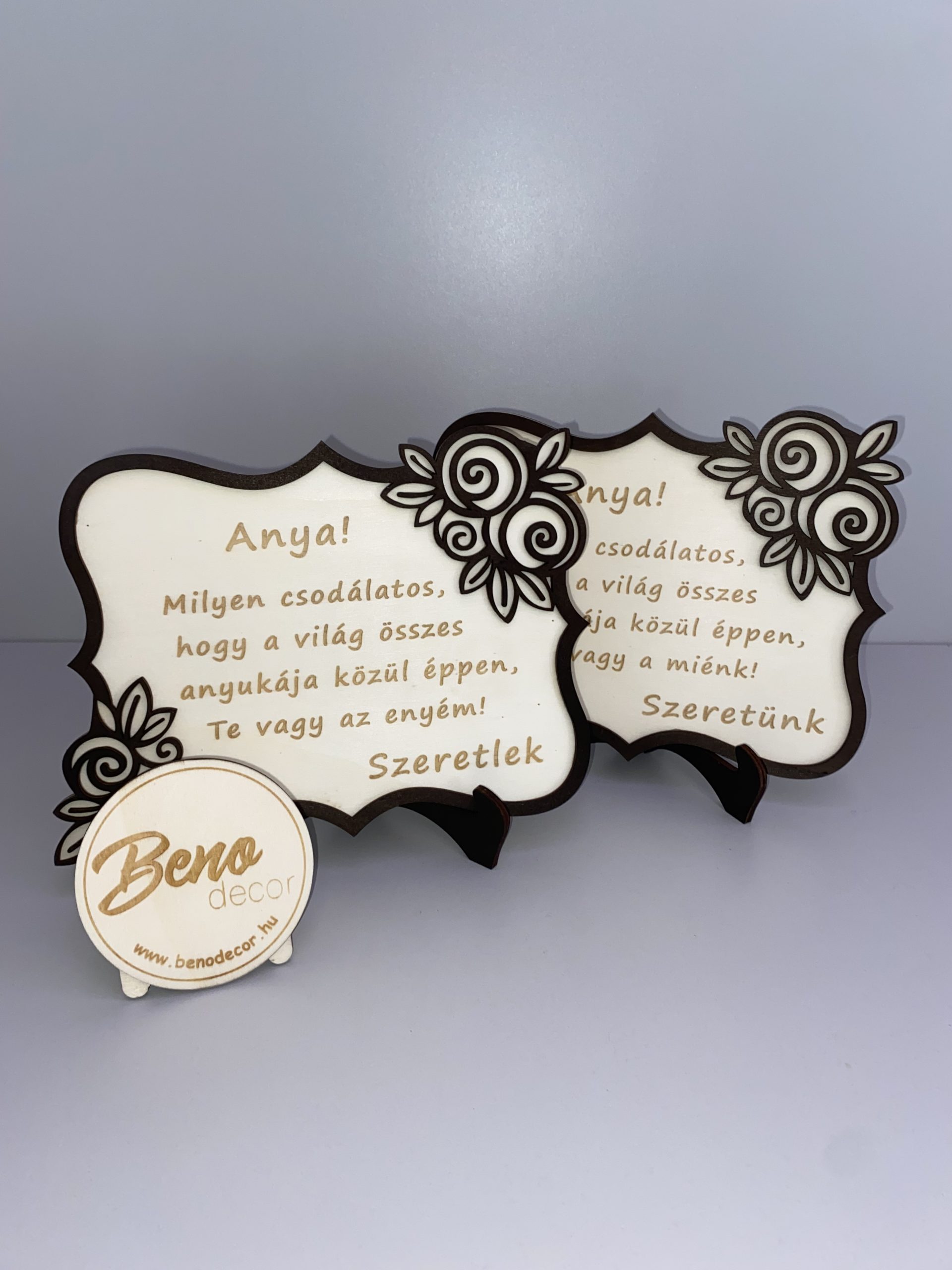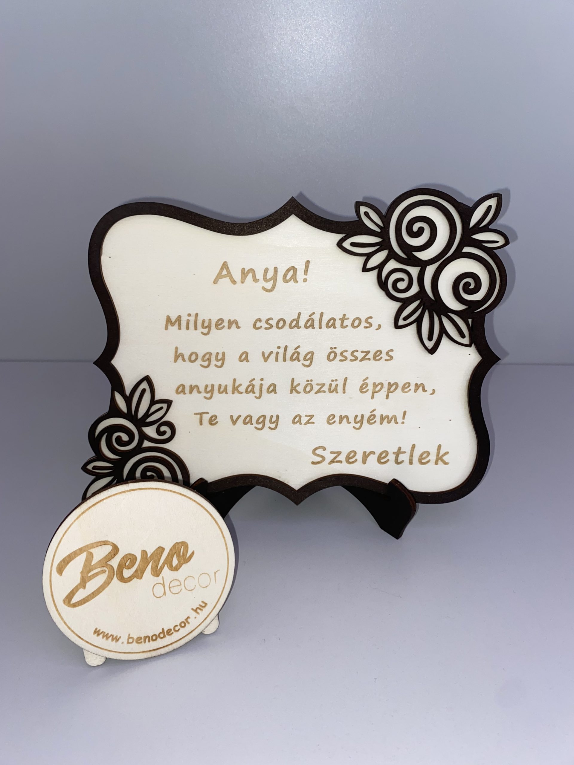 Ez a kézzel készült gravírozott fa tábla „Anya” felirattal tökéletes ajándék azok számára, akiket a legjobban szeretünk. A meghitt üzenet – „Milyen csodálatos, hogy a világ összes anyukája közül éppen Te vagy az enyém!” – minden nap emlékeztet a szeretetre és az összetartozásra.