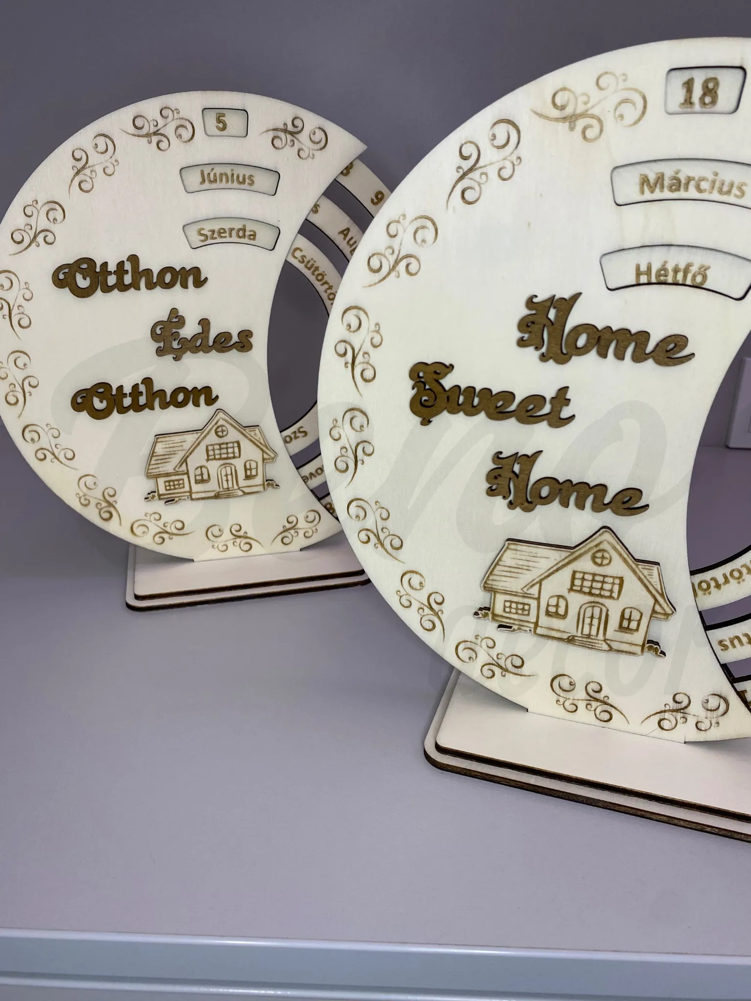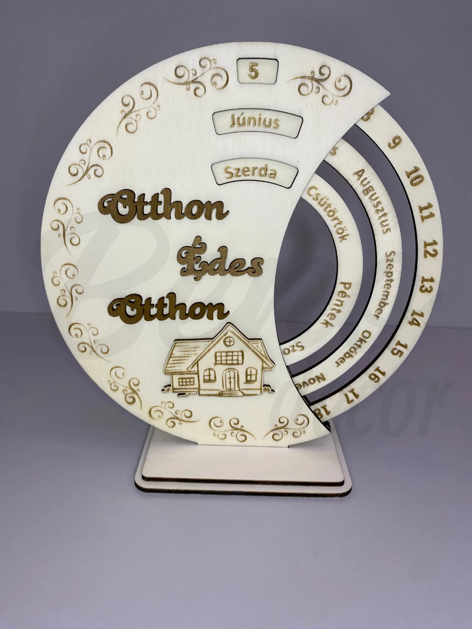 Varázsolj meghitt és stílusos hangulatot otthonodba ezzel a különleges, fából készült öröknaptárral, amely az otthon melegségét és szeretetét szimbolizálja. Kézzel készített, gravírozott és lézervágott design jellemzi, amely tökéletes lakásavató ajándék vagy saját otthonod egyedi dísze lehet.