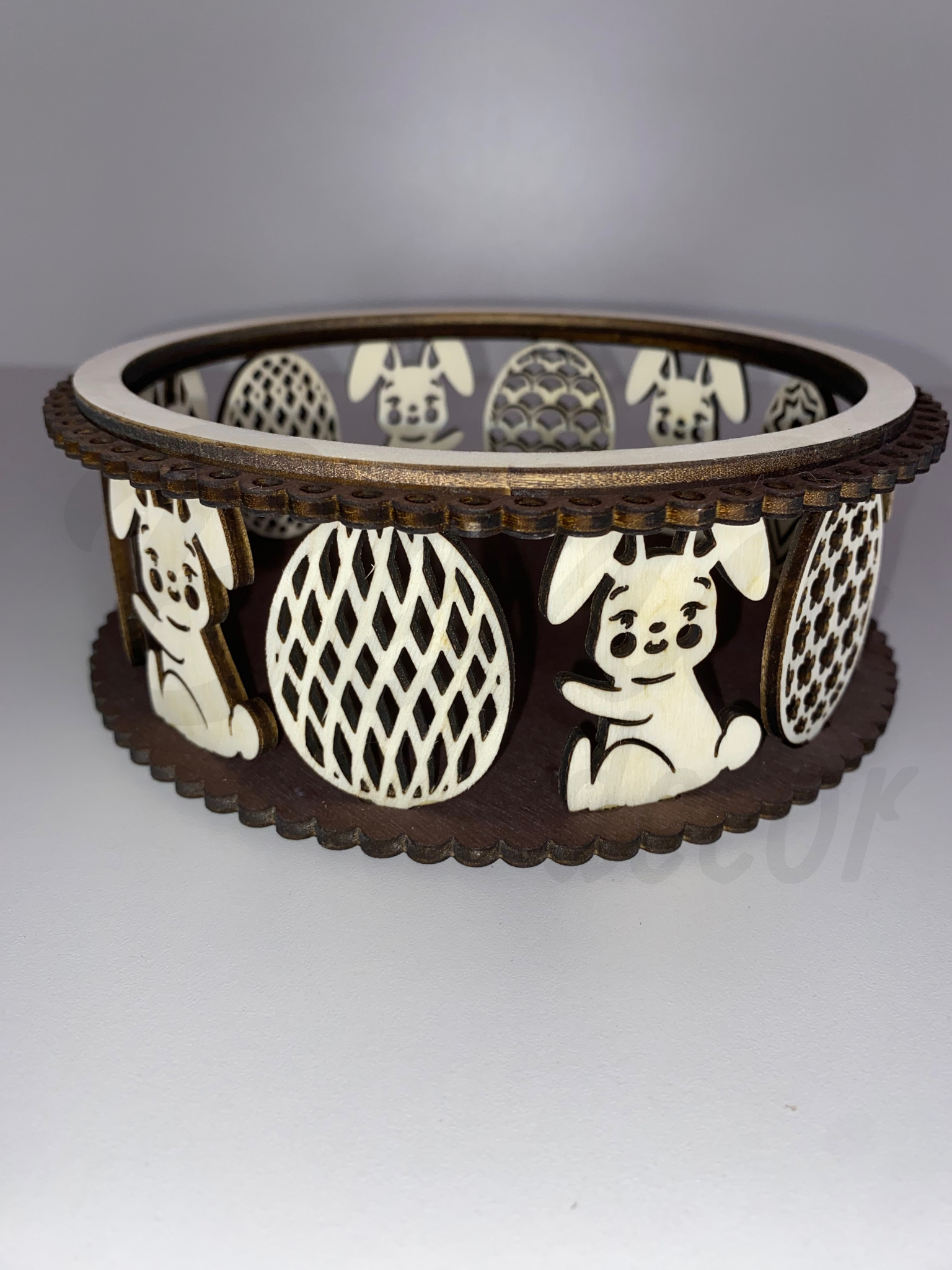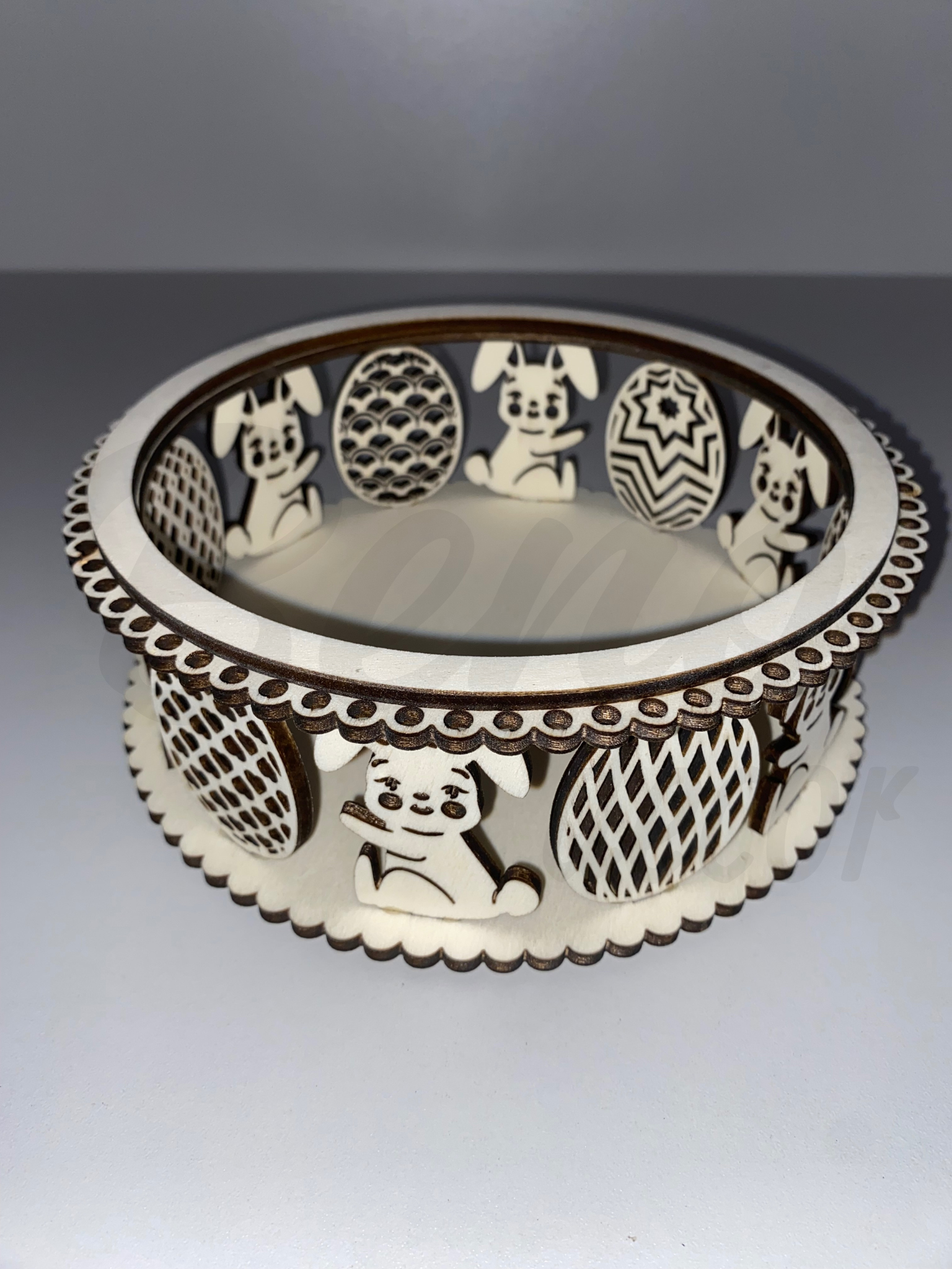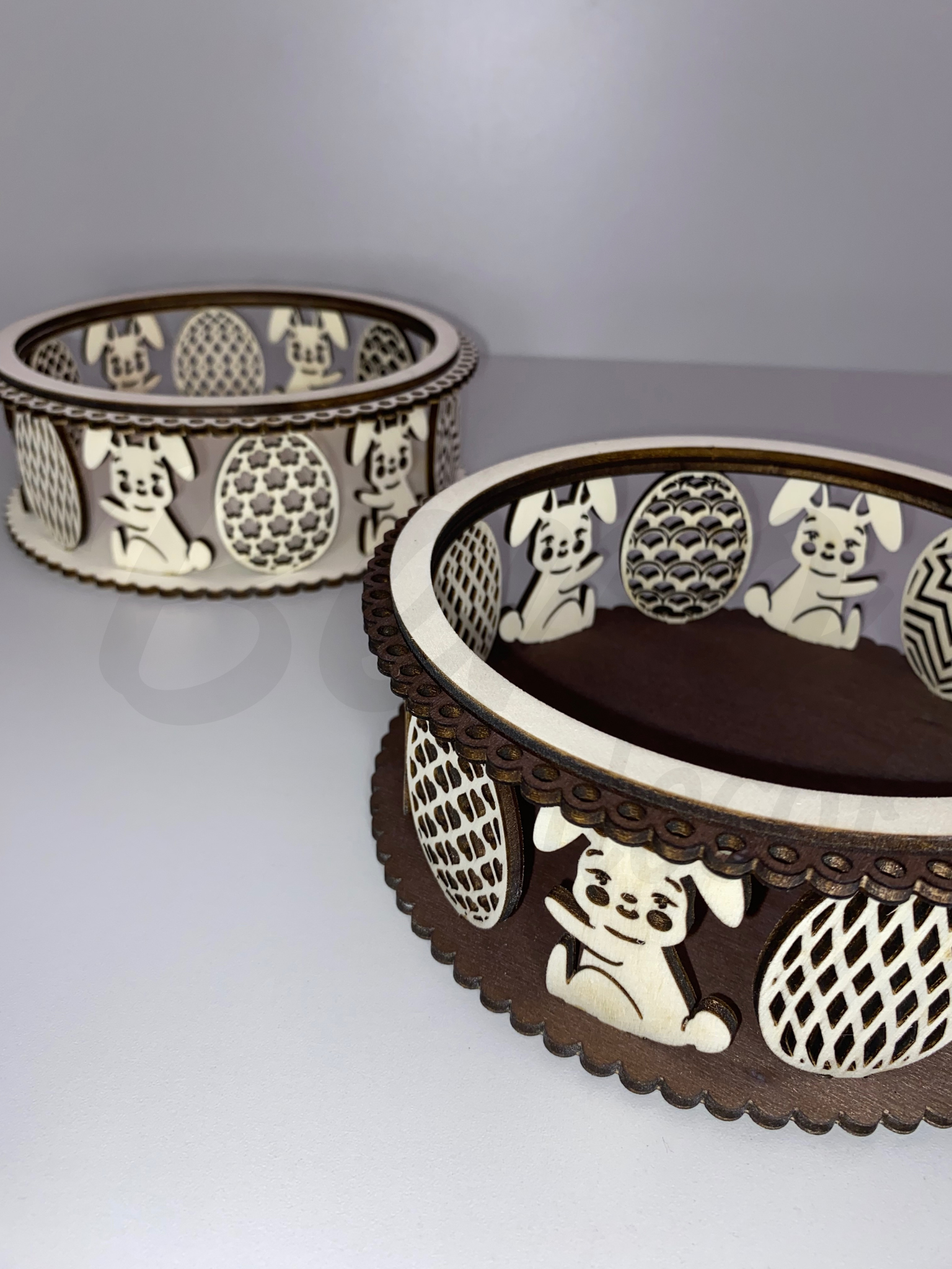 Ez a lézervágott húsvéti fa kosár tökéletes választás ajándékok, édességek vagy meglepetések stílusos tálalására. A kedves nyuszis és tojásmintás díszítés igazán vidám, tavaszi hangulatot teremt. A kosár két színben elérhető.