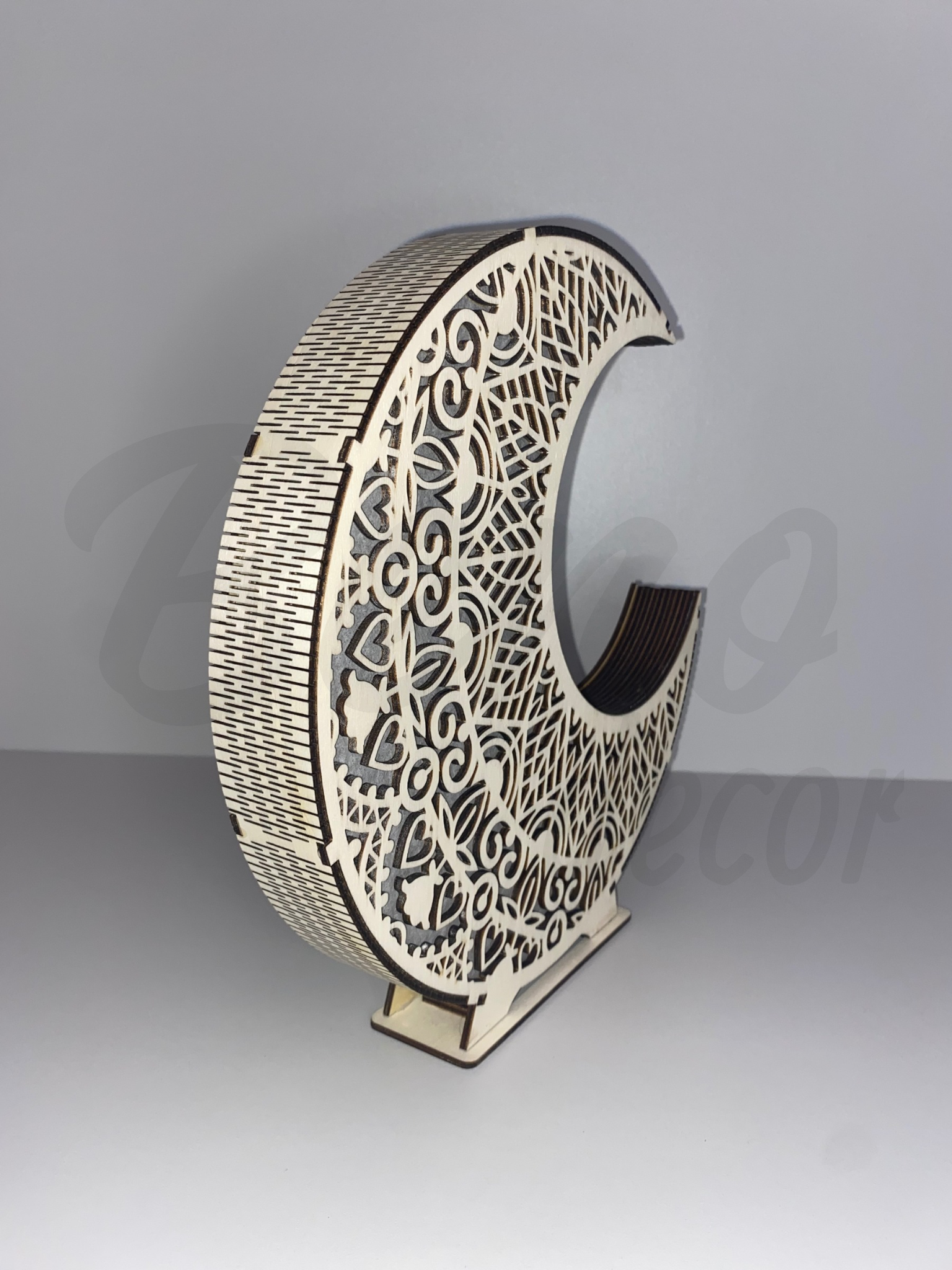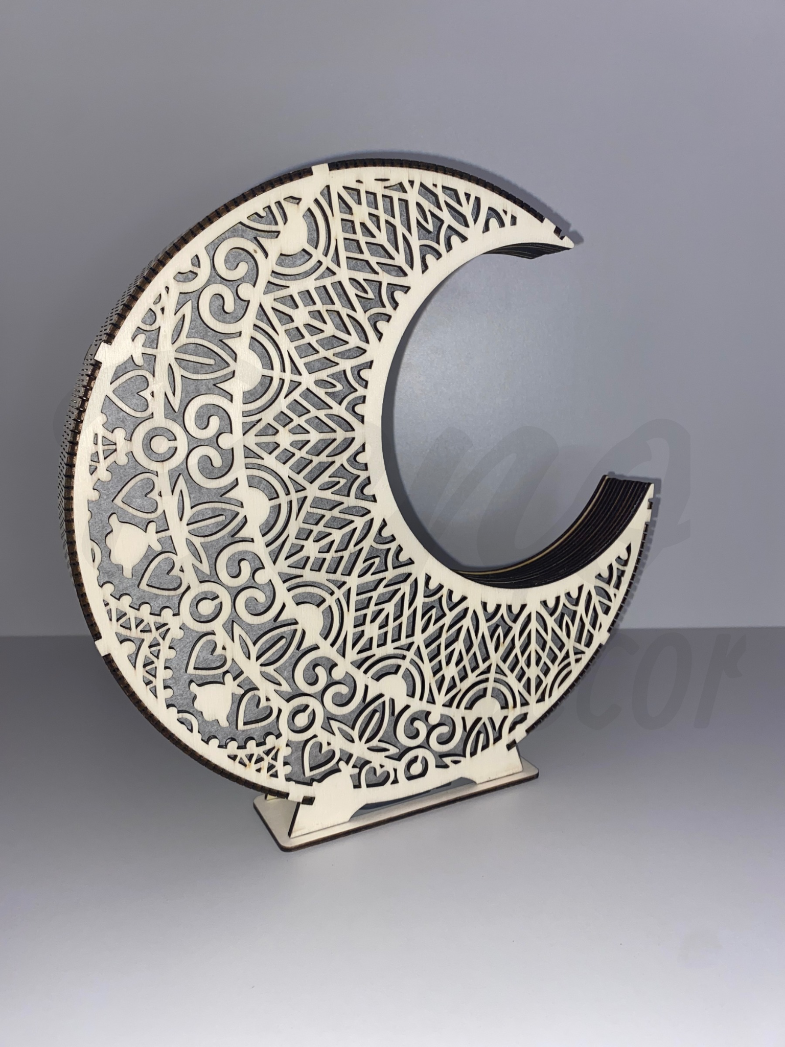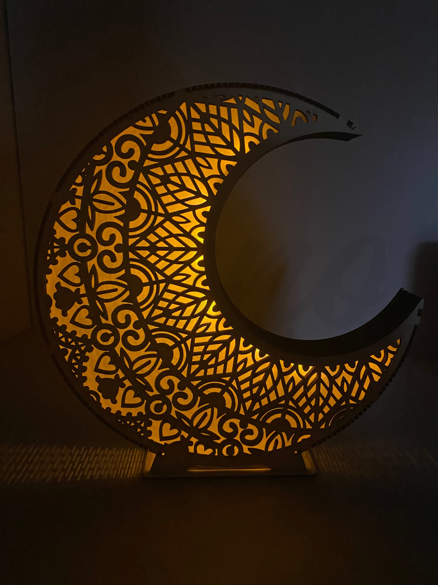 Ez az egyedi, hold mandala lámpa természetes fából készült, lézervágott mintákkal, melyek meleg, puha fényt engednek át. A hold formájú design és a mandala motívumok harmóniát, békét és meghittséget sugároznak. Bármely helyiségben – legyen az hálószoba, nappali vagy dolgozószoba – varázslatos atmoszférát teremt.
