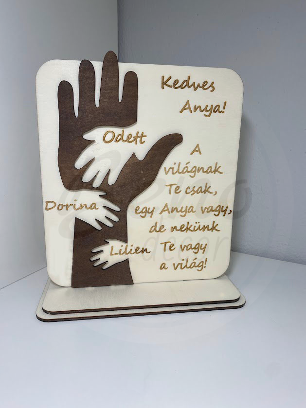 Ez a gyönyörű tábla egyedi tervezésű, két réteggel, amely személyre szabható a választott nevekkel. Biztosan felhívja a figyelmet, bárhol is van elhelyezve – legyen az a konyhapulton, a folyosón vagy az íróasztalon. Bármilyen dekoráció részeként remekül mutat majd, ezért ne habozzon ajándékozni! Tökéletes ajándék anyák napjára!