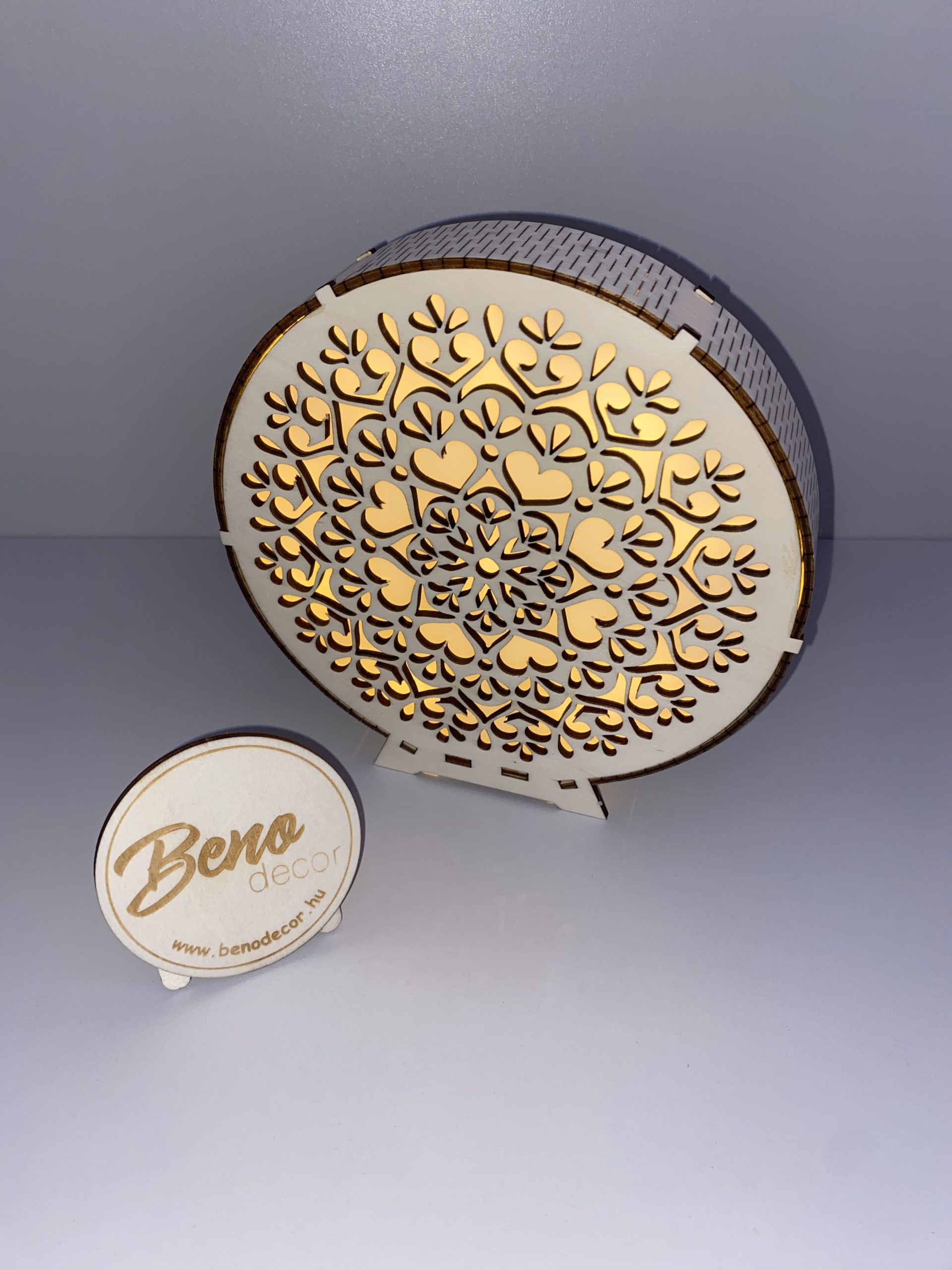 Ez a szív motívumos fa hangulatlámpa különleges fényével és lézervágott mintázatával bensőséges, meghitt hangulatot teremt bármely helyiségben. A precízen kidolgozott szívformák nemcsak fényjátékukkal, hanem elegáns megjelenésükkel is feldobják az otthonod hangulatát.