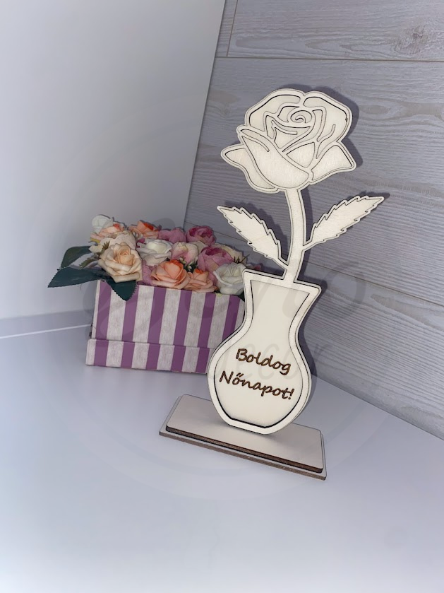 Ez a gyönyörű vázás rózsa egyedi és személyre szabott ajándék Nőnapra vagy bármilyen más ünnepi alkalomra.